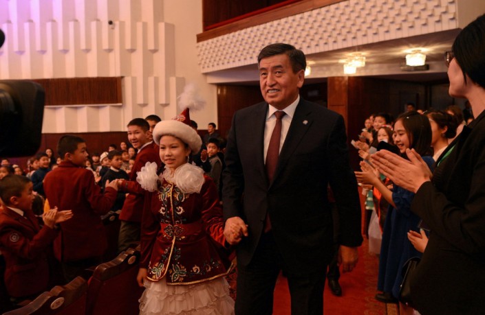 Президент Кыргызстана Сооронбай Жээнбеков и его жена Айгуль приняли участие в новогоднем представлении для детей, которое состоялось 28 декабря в Бишкеке. Об этом сообщает пресс-служба главы государства.