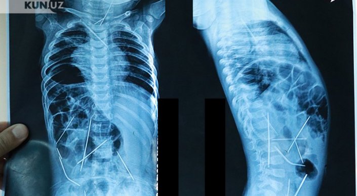 "При поступлении состояние ребенка оценивалось как крайне тяжелое. Это объяснялось совокупностью множества патологий: двусторонняя цветущая пневмония, абсцесс в области шеи, множественные инородные тела в грудной клетке, шее, брюшной полости, сказалась и многочасовая операция по извлечению игл", - рассказал профессор, доктор медицинских наук Хабибулло Акилов.