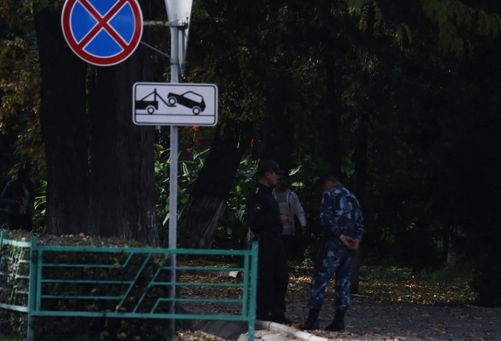 В Бишкеке усиление охраны не наблюдается. По два-три сотрудника правоохранительных органов стоят вокруг Белого дома. На остальных улицах милиционеров не видно.