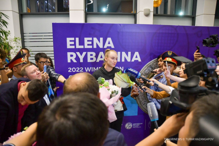 Казахстанская теннисистка Елена Рыбакина, одержавшая историческую победу на Уимблдонском турнире, вечером в понедельник, 11 июля, прилетела в Нур-Султан. В аэропорту столицы спортсменку встречали родственники, друзья, чиновники, представители СМИ и многочисленные болельщики, сообщает корреспондент Tengrinews.kz.