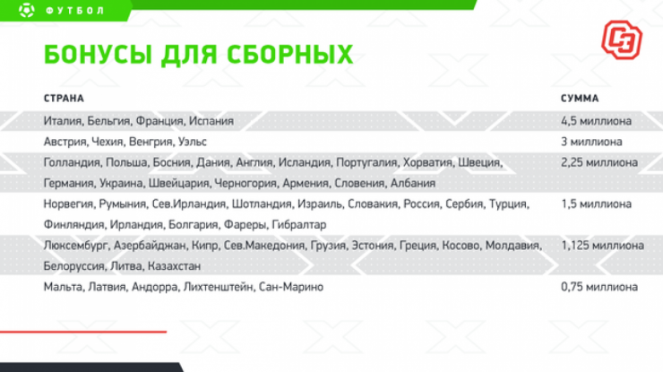 Бонусы за выступление в Лиге наций составляют: