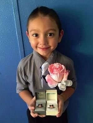 В больничную палату, где и прошла церемония "бракосочетания", к невесте Дэмиен пришел с кольцами с изображением Микки и Минни Маус. После церемонии маленькие молодожены вместе с родителями отпраздновали это важное событие, полакомившись "свадебным" тортом.