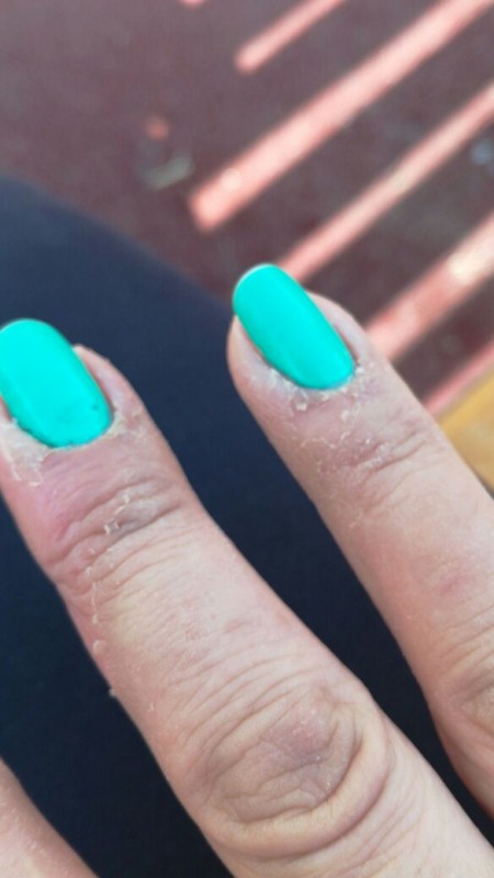 "Раньше я уже пользовалась такой же жидкостью, проблем не было. В этот раз пришлось израсходовать половину содержимого бутылька, чтобы удалить обычный лак с ногтей. Но вместо этого я начала чувствовать жжение. Хотела смыть водой и мылом - бесполезно. На утро просыпаюсь - у меня на пальцах волдыри. Ожог получила. Сейчас на коже рук трещины. Я мажу их мазью, от которой нарастает кожа", - сказала женщина.