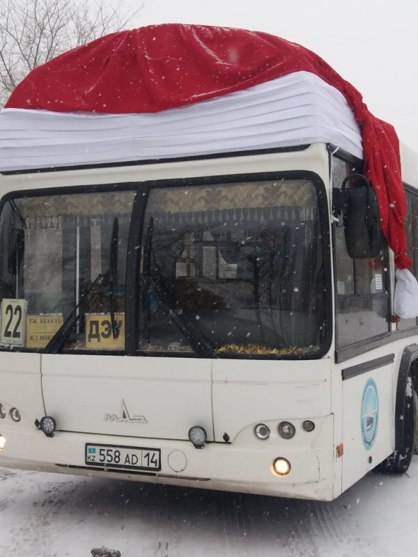 Автобус в новогодней шапке появился в Павлодаре