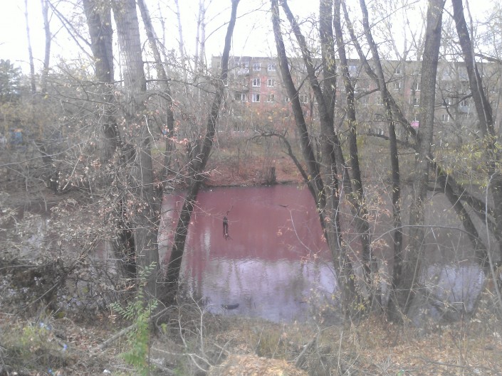 Болото окрасилось в красный цвет в Усть-Каменогорске