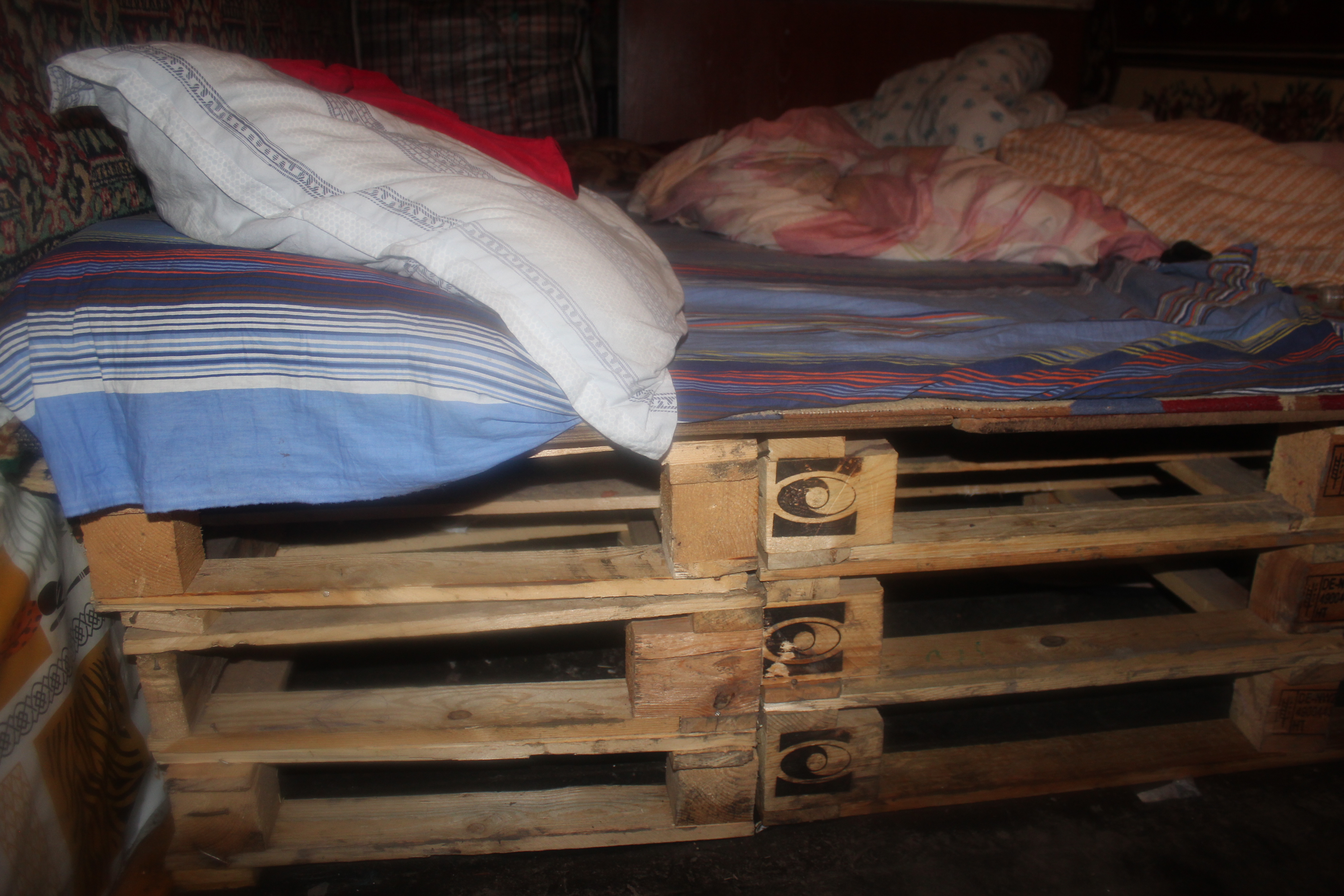 Ночью детей укладывают в наиболее сухих комнатах. Жильцы закупили строительные поддоны, уложили их в несколько рядов, чтобы постель оставалась сухой. По их словам, переезжать никуда не собираются - попросту некуда.