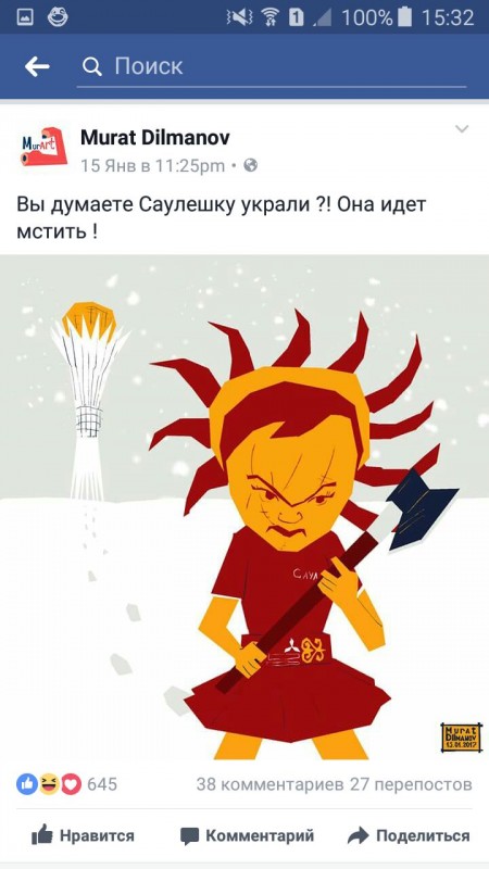 "Даже Сауле украли, а ты до сих пор не замужем!" - казахстанцы шутят о маскоте EXPO-2017 Иллюстрация: Facebook/Murat Dilmanov