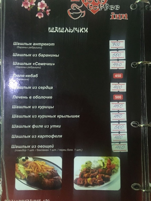В кафе шашлык стоит от 400 до 1 050 тенге. Горячие блюда - от 1 450 до 2 490 тенге. Суши - от 845 до 2 000 тенге.