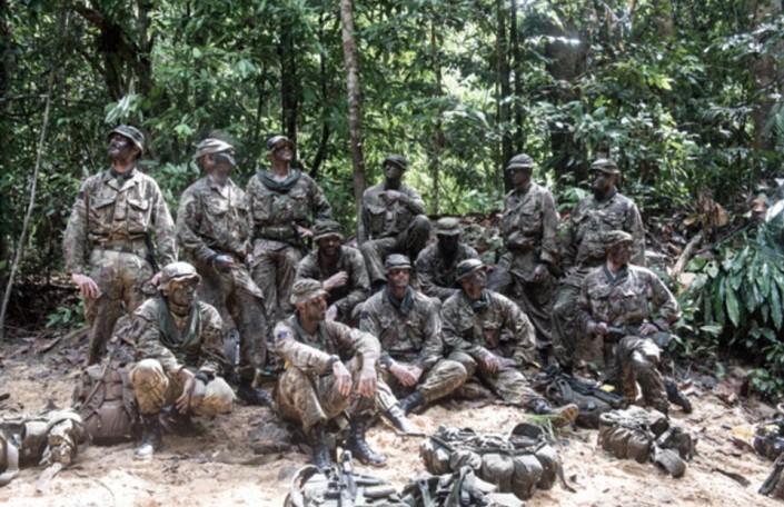 Как пишет газета Daily Mail, фотография была сделана в рамках учений по разведке в Юго-Восточной Азии, которые проводят солдаты полка Дворцовой кавалерии (Household cavalry). Различить военных в камуфляже среди лесных зарослей практически невозможно.