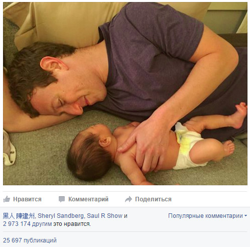 Фотография основателя социальной сети Facebook Марка Цукерберга с новорожденной дочкой за день собрала почти 3 миллиона лайков, сообщает Tengrinews.kz.