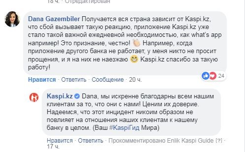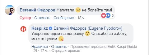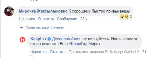 К вечеру среды работа Kaspi.kz была восстановлена. В компании предупредили, что технические работы продолжаются, и некоторое время еще могут быть перебои в работе. Казахстанцы с пониманием и благодарностью отзывались о восстановлении привычных сервисов. Кстати, это не первая инфоатака на Kaspi, и они могут себе позволить отнестись этому с юмором.