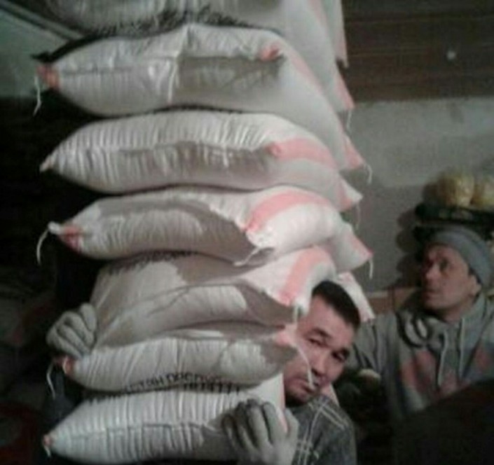 41-летний грузчик из Талдыкоргана обрел популярность после опубликованного в Казнете фото, передает корреспондент Tengrinews.kz. В социальных сетях появился снимок, где мужчина за один раз поднял десять мешков с перловкой весом по 25 килограмм, что очень удивило пользователей, которые отметили его способности.