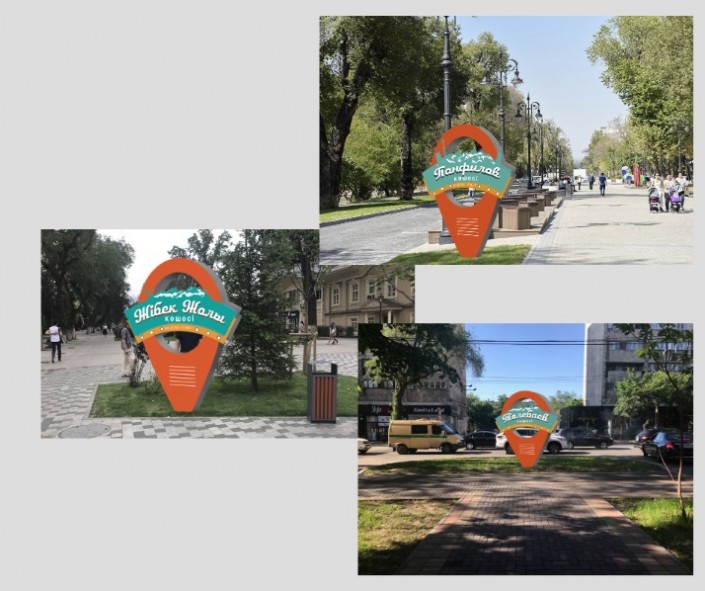 Автором сделана попытка продолжить и размножить как кадр юрту на оси улиц Сатпаева и Байсеитовой. Своим положением арт-объект повторяет и показывает живые изгибы улиц Алматы. Размноженные и разделенные на доли части юрты дают возможность жителям ощутить влияние памяти и времени.