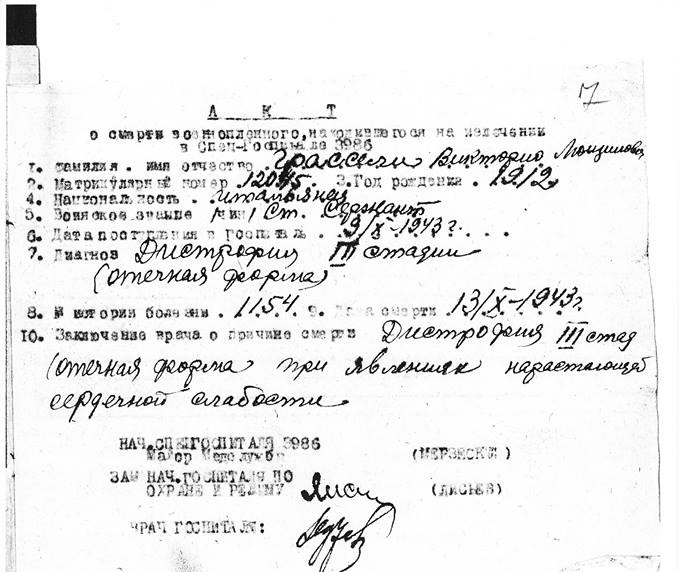 Акт о смерти военнопленного.