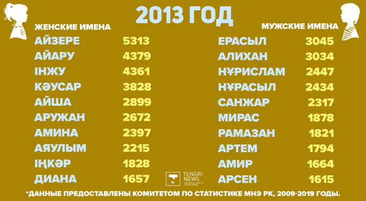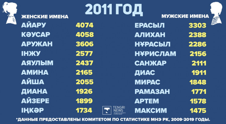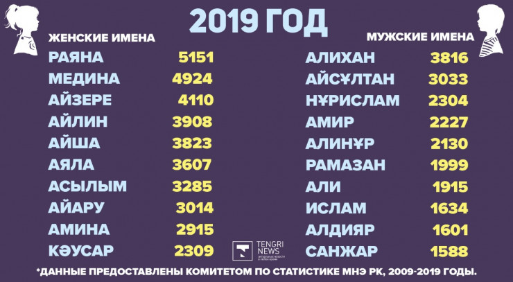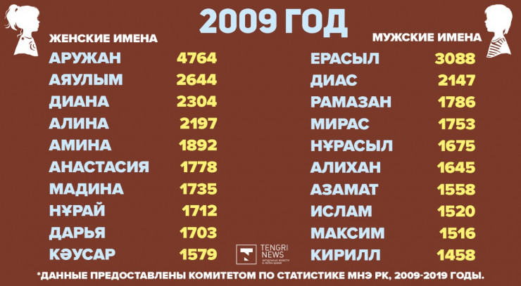 Редакция Tengrinews.kz подготовила подборку самых популярных имен в Казахстане с 2009 по 2019 годы.