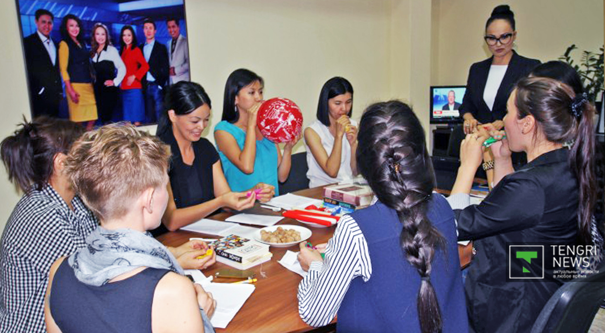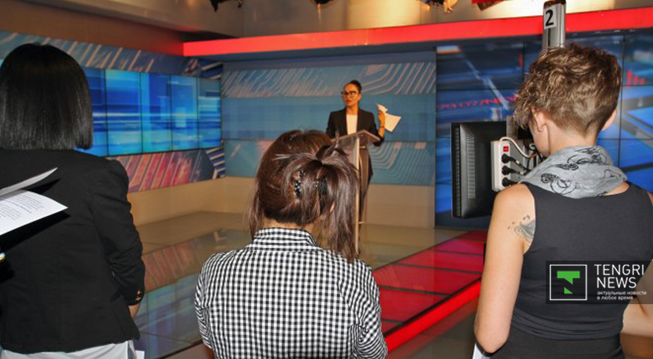 Уже на третьем занятии слушательницы курса увидели новостную студию и попробовали себя в роли ведущих новостей.