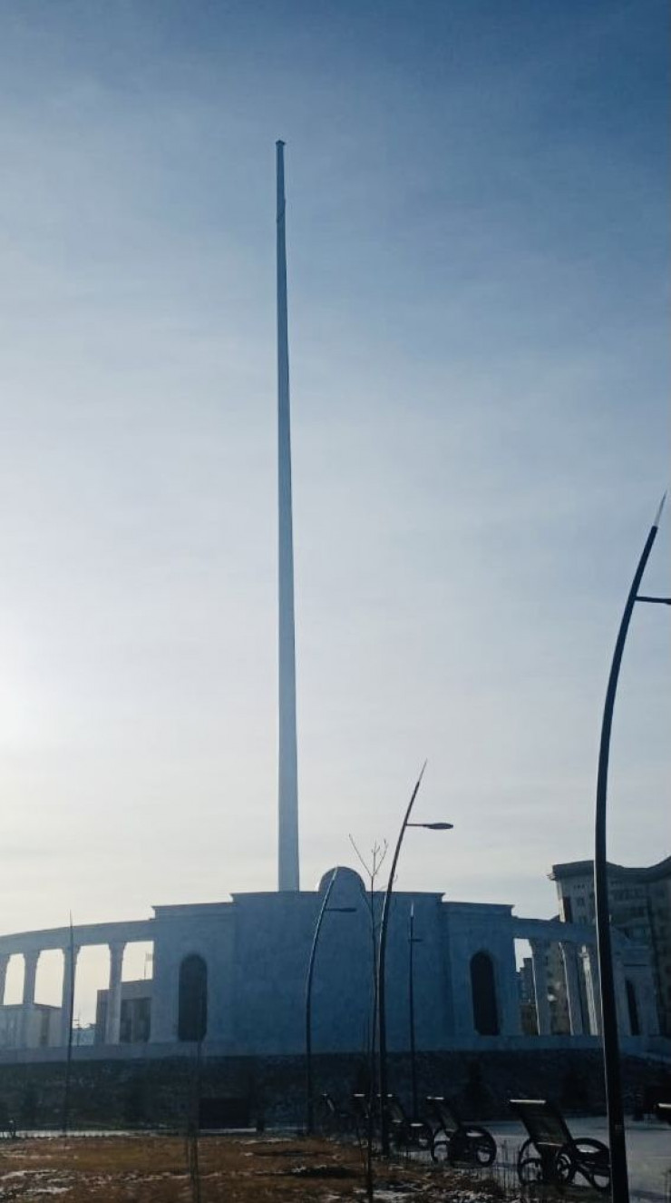 Напомним, 20 декабря прошлого года от сильного ветра упала секция недостроенного флагштока. А церемония поднятия флага на 91-метровый флагшток прошла 30 декабря.