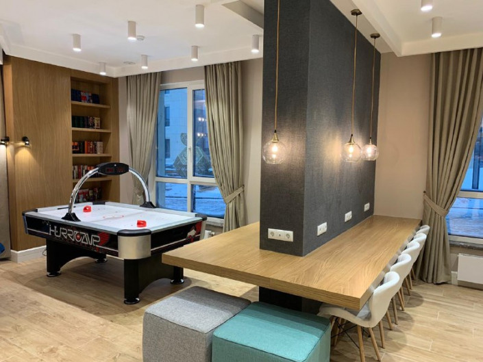 Видоизменились и зоны коворкинга. Помимо традиционных книг и уже ставших стандартом настольных игр, здесь есть зона для организации фуршета. Стоит отметить, что коворкинг - только в высотках.