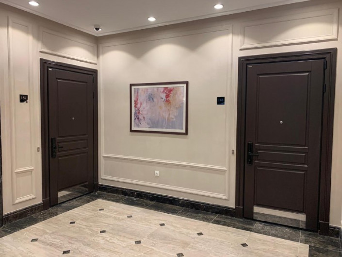 21 декабря состоялась торжественная сдача первой очереди. Комплекс состоит из трех блоков: одного 6-этажного и двух башен высотой 22 этажа. Малоэтажный относится к категории премиум: здесь всего шесть квартир, по одной-две на площадке, высота потолков - 3,3 метра, а в квартирах установлены электрозамки. Во всем остальном они идентичны. Так, во всех блоках будут консьержи, предусмотрена зона ожидания для гостей, в которой есть даже санузел.