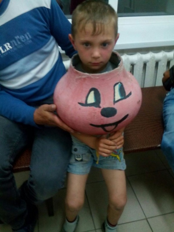 "По прибытии на место вызова установлено, что шестилетний мальчик играл во дворе дома и надел на голову котелок без дна. Родители не смогли самостоятельно снять котелок. Для разрезания тела котелка были применены гидравлические ножницы. Предварительно кромка котелка была облеплена лентой и фрагмент за фрагментом была удалена часть котелка, после чего котелок был снят с головы мальчика", - рассказали в пресс-службе.