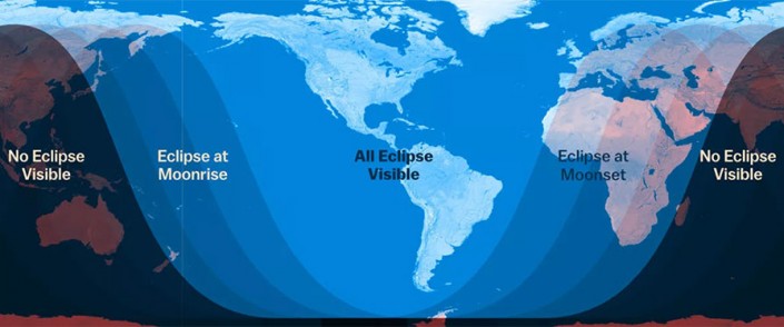 Карта видимости затмения. NASA JPL