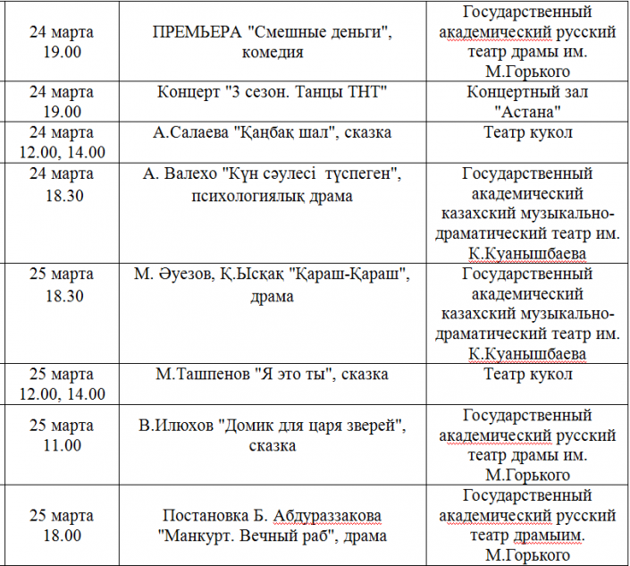 Куда можно сходить в Астане в праздничные дни марта