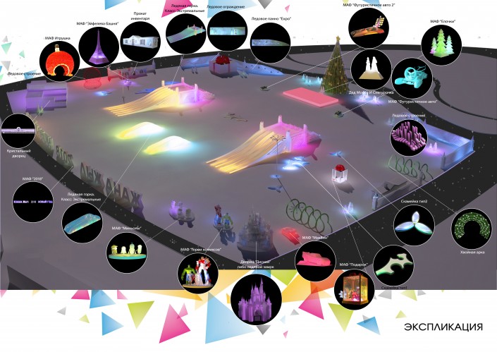 "Основной и самый крупный ледовый городок в этом году будет расположен на территории выставки EXPO в Астане.  В качестве основной концепции оформления ледового городка были выбраны тема самой выставки - "Энергия будущего", и идея провести своего рода тур по наиболее узнаваемым архитектурным символам из истории всемирных выставок. К примеру, посетители ледового городка в Астане смогут увидеть фрагмент хрустального дворца (Crystal Palace), построенного в лондонском Гайд-парке ко Всемирной выставке 1851 года", - ответили в управлении культуры на запрос редакции.