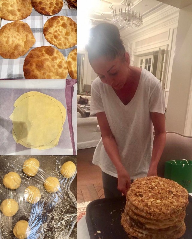 Первая леди Азербайджана в процессе приготовления торта. "Мамин "Наполеон" самый вкусный на свете", - подписала снимок Лейла. © instagram