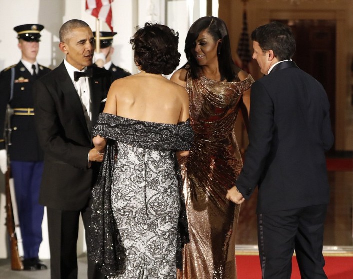 Минувшим вечером в Вашингтоне на лужайке Белого дома состоялся прощальный ужин Барака Обамы на посту президента США. На мероприятие пригласили 450 гостей, главными из которых стали премьер-министр Италии Маттео Ренци и его жена Аньезе Ландини, сообщает USA Today.