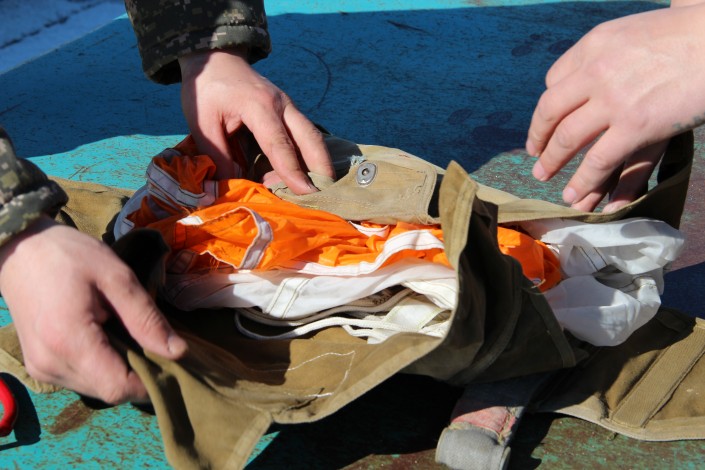 "В десантные войска попасть трудно, здесь есть особые требования и критерии к солдатам. Кроме того, что они проходят психологический отбор в военкоматах, после еще есть психотест здесь, в части, и перед каждым прыжком мы тоже смотрим - готов или не готов. Психологический настрой перед прыжком очень важен, его видно, даже когда солдат стоит на линии старта, по глазам сразу все видно. Если в ком-то сомневается офицер-инструктор или врач, того мы тоже отстраняем от прыжков", - пояснил полковник Житник.