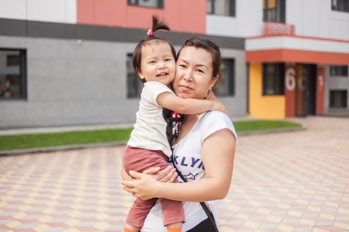 Спутать этот дом с соседними невозможно, яркие фиброцементные панели создадут настроение в любое время года, и их отличные характеристики немаловажны при резко континентальном климате Нур-Султана. Чтобы не нарушать фасад, строители предусмотрели корзины для кондиционеров под цвет панелей. Огромный двор площадью 6000 квадратных метров включает универсальное поле для игры в футбол и баскетбол, малые архитектурные формы и площадки для детей разного возраста. Украшение двора - светящееся дерево, впрочем, и вся подсветка дома создает особое настроение в темное время суток. Из радующих глаз деталей также - яркие стены паркинга и фигурки животных на ограждениях.