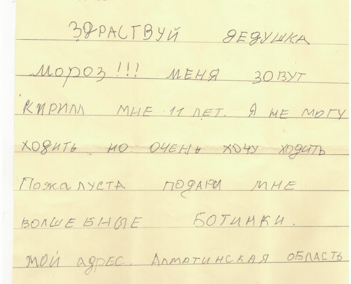 Письмо от мальчика Кирилла из Алматинской области доказывает, что дети верят в чудеса и в существование Деда Мороза. Без доли грусти это послание прочесть невозможно.