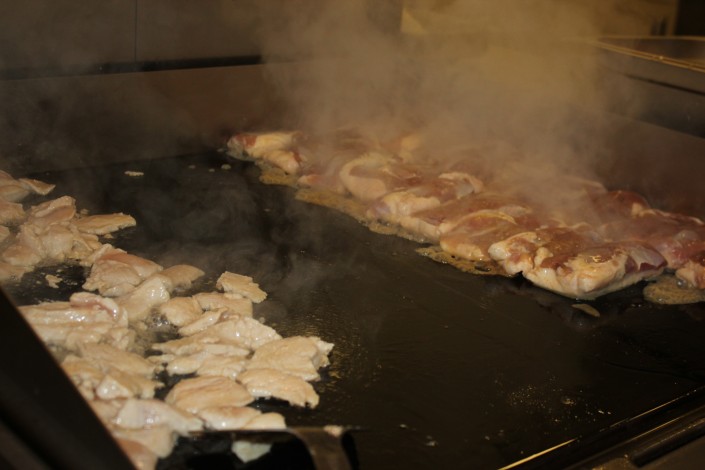 Что именно подадут пассажирам на борт - зависит от заказа авиакомпании, но судя по тому, что сейчас готовят на кухне, основное меню - мясное.