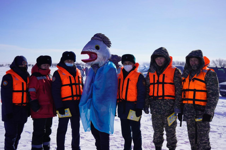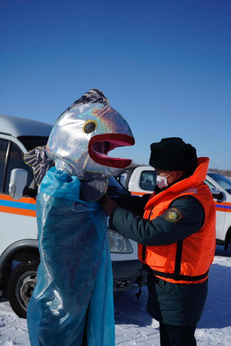 Спасатели ВКО вновь удивили своим креативом: на этот раз огромная рыба разъясняла рыбакам правила поведения на льду, передает корреспондент Tengrinews.kz.