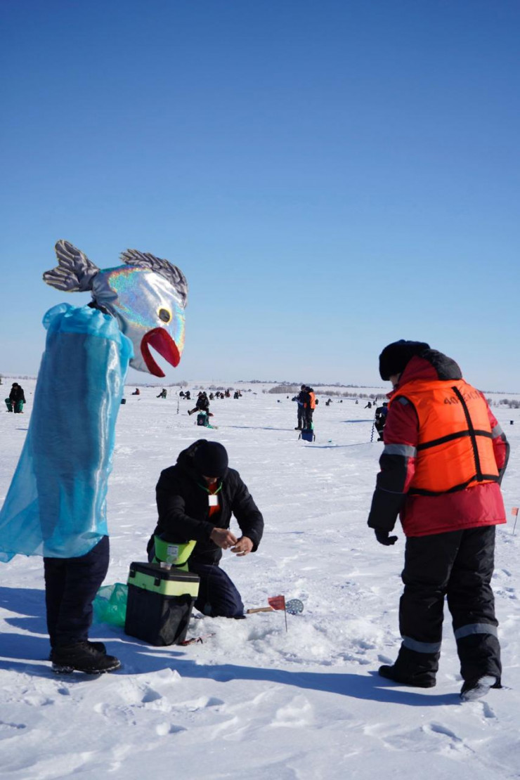 На лед к участникам мероприятия вышла огромная "рыба", которая провела инструктаж по соблюдению мер безопасности на льду. Креативная идея сотрудников ДЧС вызвала настоящий фурор – участники чемпионата с удовольствием общались с "рыбой", не скрывая восторга.