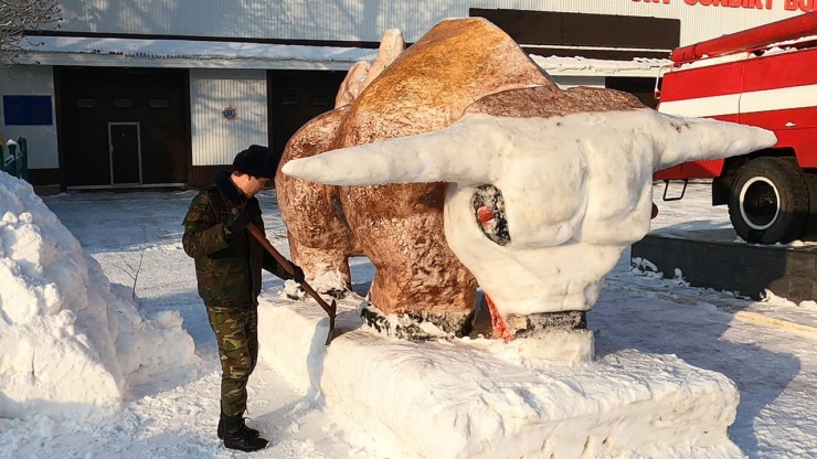 "Пожарные собирали снег вокруг части. Личный состав оказал большую помощь. Мы использовали лопаты и скребки. Снежные скульптуры – это мое хобби с детства. Надеюсь, год Быка принесет спокойствие и благополучие", - отметил мужчина.