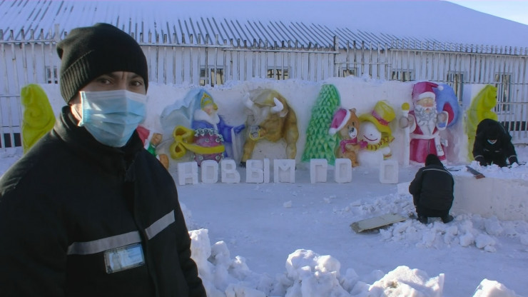 "Группа осужденных из разных корпусов решила сообразить такую композицию из снега, - рассказал один из сидельцев Рымгали Бурбаев. –  В нынешнем году количество снега зашкаливает, и чтобы не тратить силы для его вывоза, решили это все воплотить вот в такую фигуру. Снеговику даже имя дали осужденные - Глыба. В следующем году мы хотим установить рекорд и создать еще более громадного снеговика, минимум 10-12 метров".