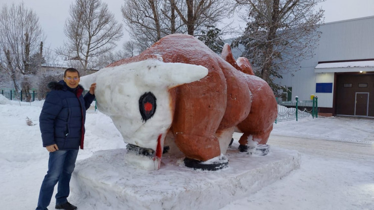 А в​​​​​ Уральске появился снежный бык. Массивная фигура из снега установлена напротив специализированной пожарной части № 1. Рядом с ней стоит автоцистерна, которая осуществила тысячи выездов на пожары.