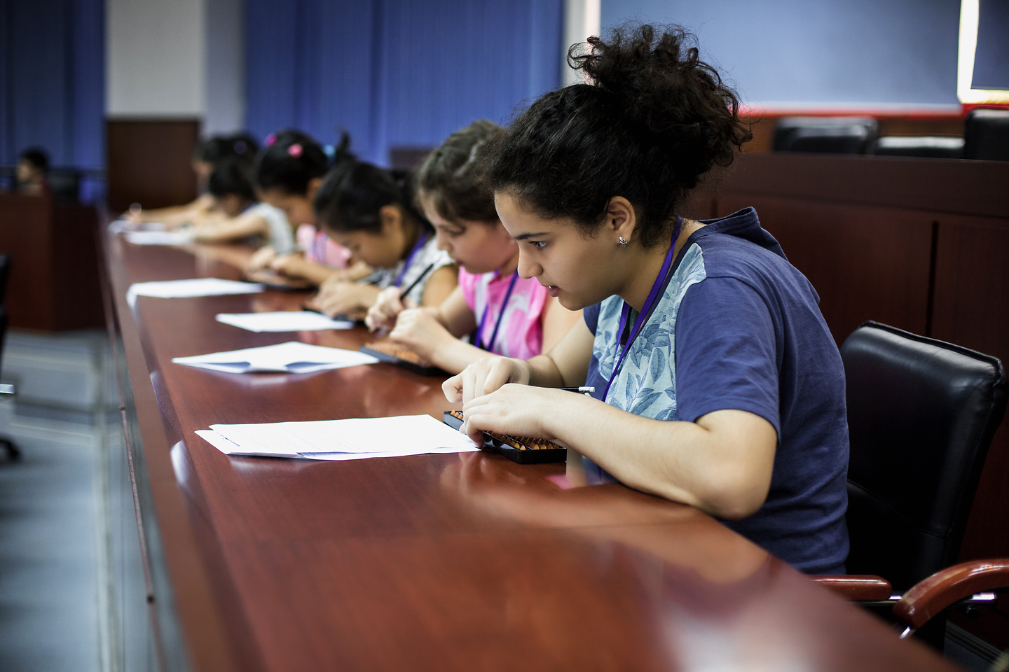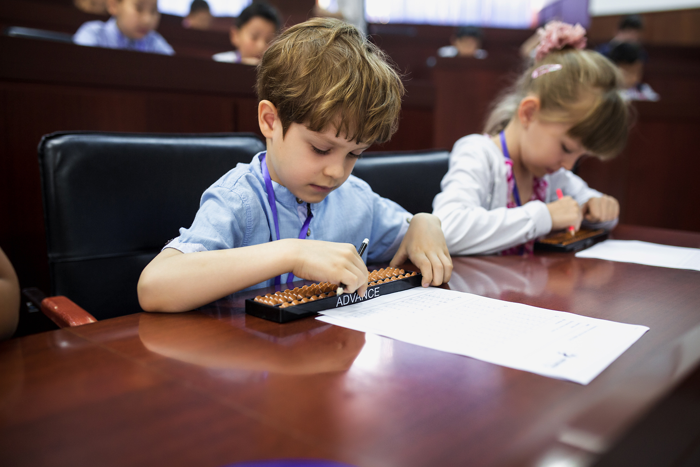 В олимпиаде приняли участие около 200 учеников-гениев центра интеллектуального развития Advance. Дети от 6 до 16 лет продемонстрировали свое умение за считанные секунды работать с огромными числами, они складывали и вычитали многозначные числа в уме и на специальных счетах (абак).