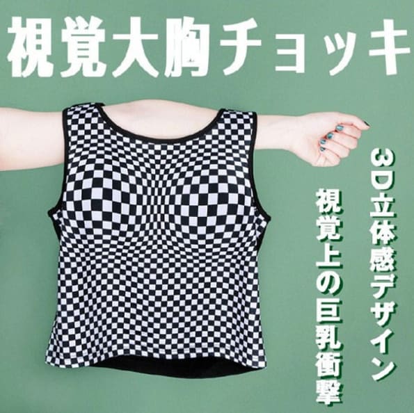 Из-за особого расположения и искаженных пропорций черно-белых шашечек кажется, будто грудь становится больше.