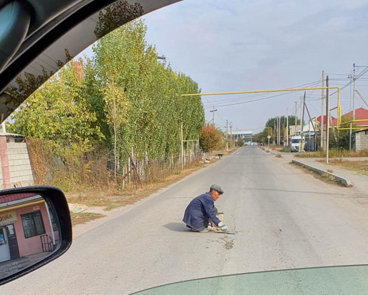 "Ара-тұра көшедегі шұрық-тесіктерді жамап, тал егіп, сыпырып тұратын көршіміз. "Сендердің көліктерің бұзылмасын деп жамаймын-ей" дейді бүгін, әйтпесе атамның өз көлігі де жоқ", - деп жазған ол.