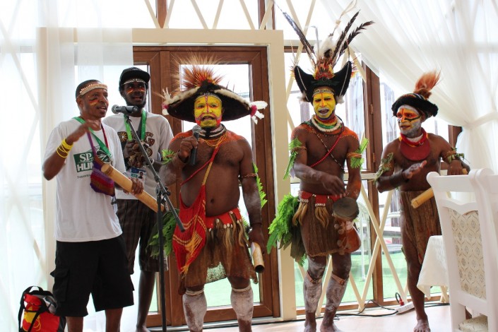 Делегатов из Папуа-Новой Гвинеи, приехавших в Астану для участия в EXPO-2017, накормили национальной кухней, передает корреспондент Tenginews.kz.