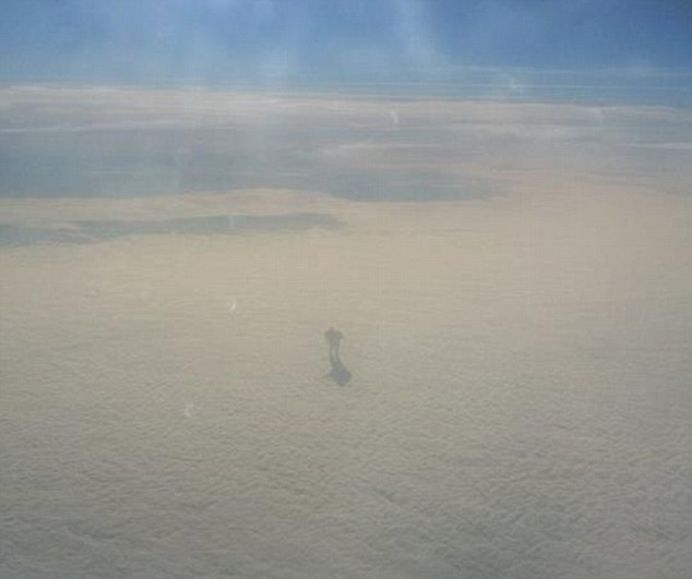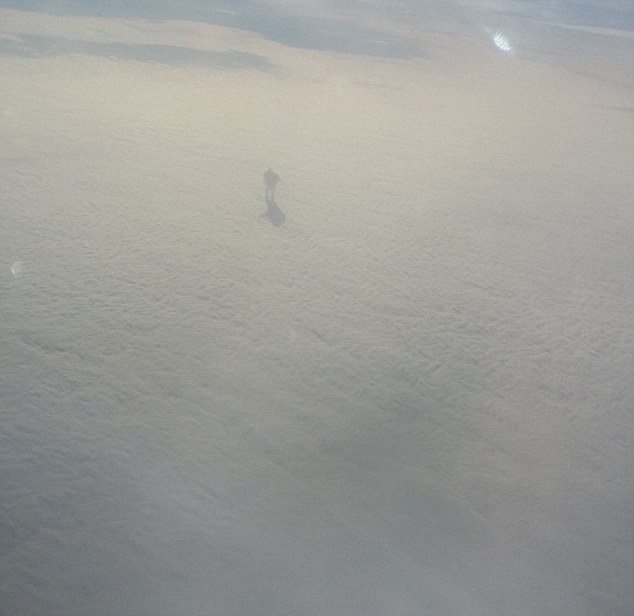 Пассажир самолета сфотографировал странную фигуру, шагающую по облакам © dailymail.co.uk
