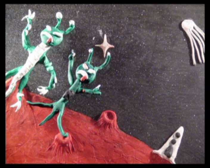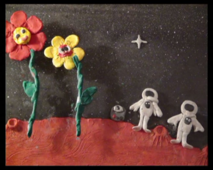 Мультик повествует о том, как космонавты прилетели на чужую планету и превратили злых монстров в цветочки. Процесс кропотливый и даже нудный, признаются дети. Чтобы получился этот полутораминутный мультик, к примеру, понадобилось сделать не менее двух с половиной тысяч кадров.