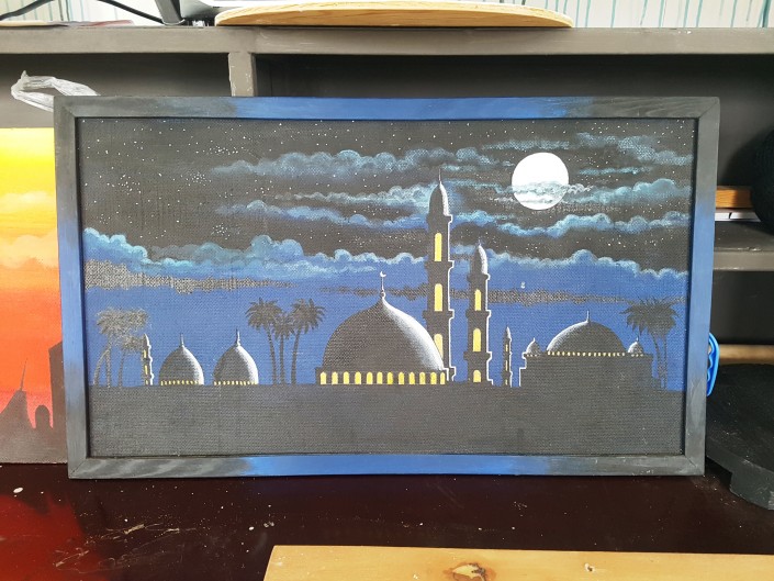 Художник рассказал, как принимал участие в оформлении двух мечетей. Абдул Кадыр расписывал аяты из Корана в первой мечети Астаны имени Садуакас кажы Гылмани по улице генерала Сабыра Ракымова и в мечети поселка Интернациональный под Астаной.