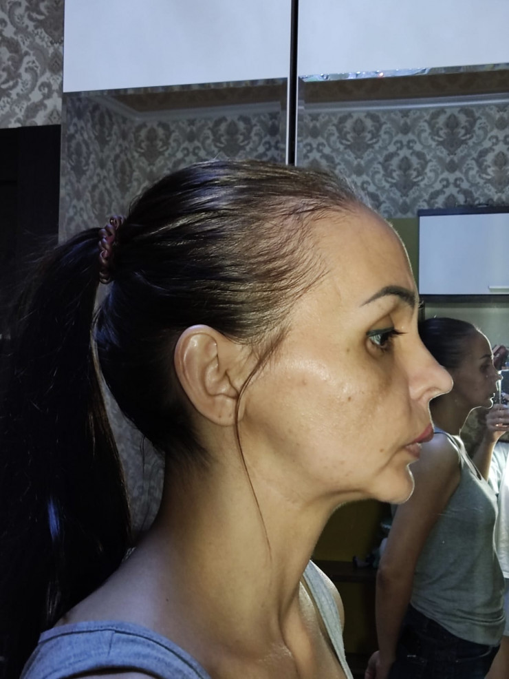 "На следующий день после операции, когда я пришла в себя, он мне объявил о том, что, помимо верхней челюсти, он мне сломал еще и нижнюю челюсть, и подбородок. У меня не было проблем с нижней челюстью и с подбородком. От природы он небольшой у меня. Он сказал: "Я посчитал, что так будет лучше, я думал, что у тебя подбородок как будто ушел внутрь. Асимметрия лица не соответствует, и я решил его вперед выдвинуть". Как он мне объяснил, он взял кусок кости с одной стороны моей скулы, сломал подбородок и вложил туда кость.