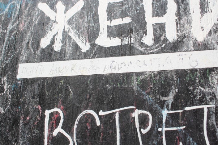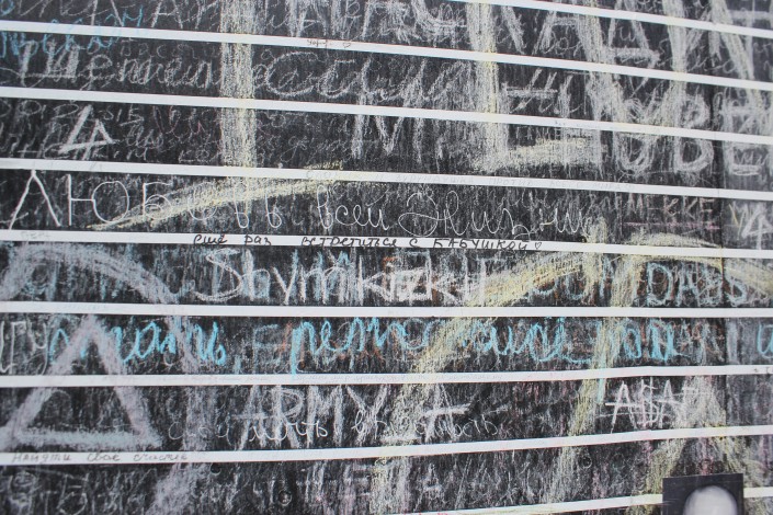 На доске можно прочитать слова скорби и увидеть фотографию погибшего солиста американской рок-группы Linkin park Честера Беннингтона.