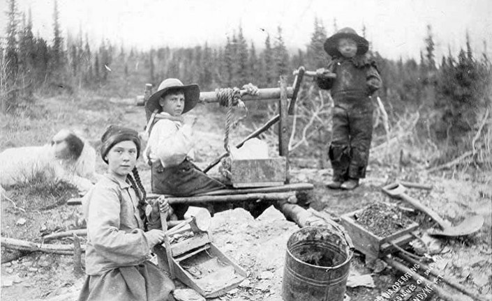 Снимок сделан примерно в 1898 году в канадской территории Юкон. Он был найден в архиве Вашингтонского университета. На ней изображены дети, занимающиеся ручным трудом, чтобы получить воду для выращивания зерновых культур. Девочка слева очень похожа на Грету Тунберг.