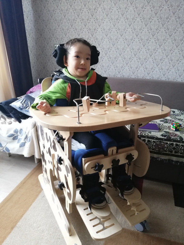 Недавно родители малыша узнали об эффективности использования специального стула-вертикализатора, который позволяет фиксировать ребенка, чтобы мышечные спазмы не мешали телу принимать правильное положение. Благодаря таким тренировкам дети учатся сидеть и стоять, а еще развивают свой интеллект и мелкую моторику с помощью красочных игровых панелей.