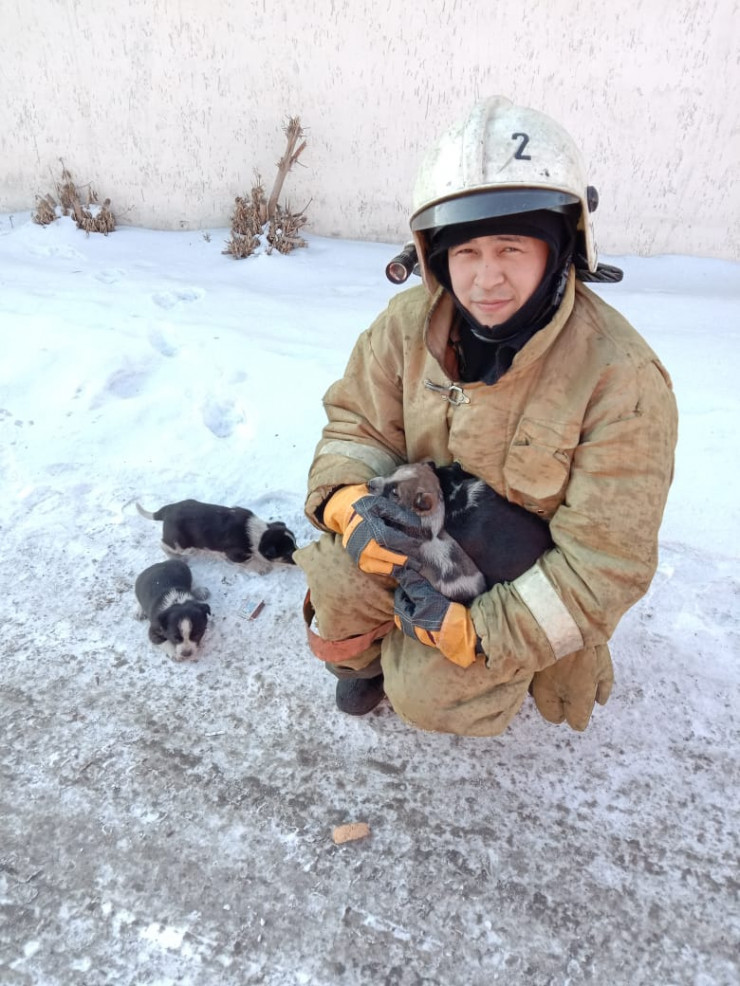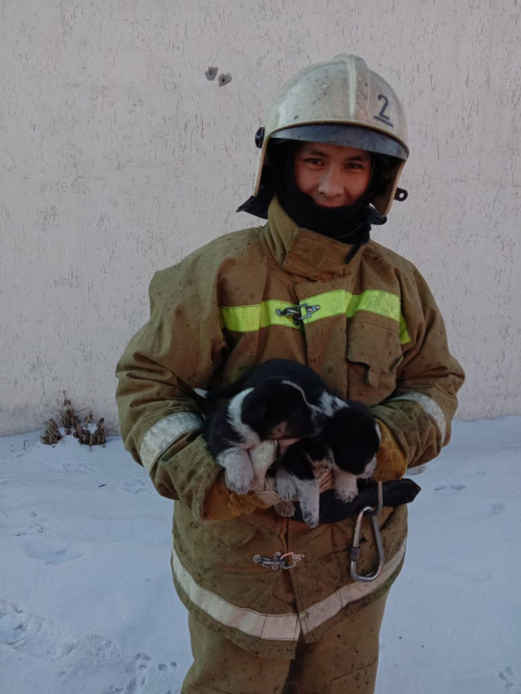 "К счастью, людей в заброшенном здании не было. Но в ходе тушения огня старший пожарный-спасатель Наурыз Мухажанов и командир отделения Исламбек Атеев обнаружили четырех щенят, которые находились рядом с горящим мусором", - рассказал заместитель начальника специализированной пожарной части Экибастуза Жумабай Кенес.